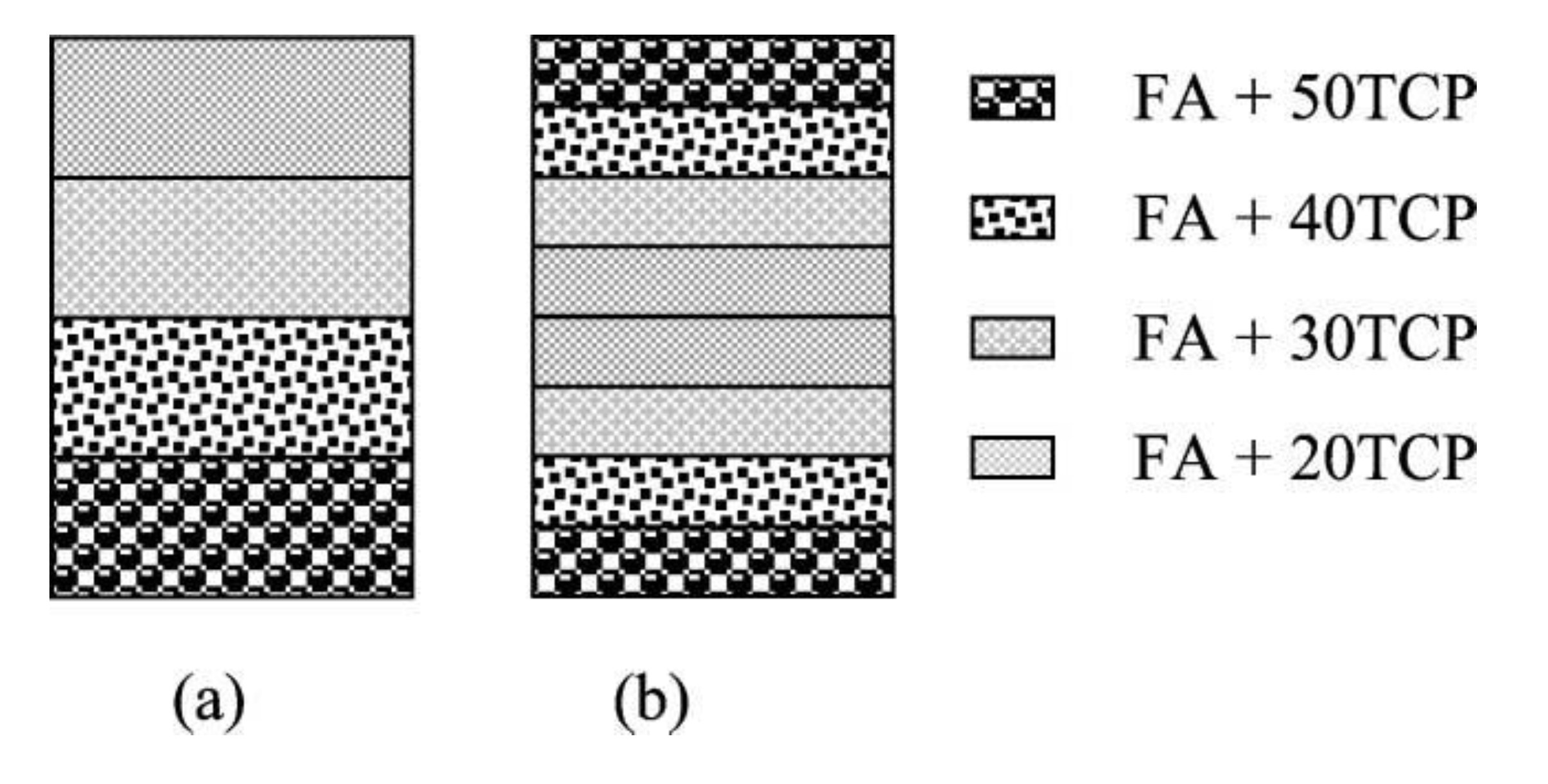 | 2003 | Charriere et al. EPFL, Switzerland | Thermoplastic negative porosity by ink jet printing, slip casting process for HA | DCPD + Calcite | No: 90 °C for 1 day | 12.5 ± 4.6 MPa | – | 44% |