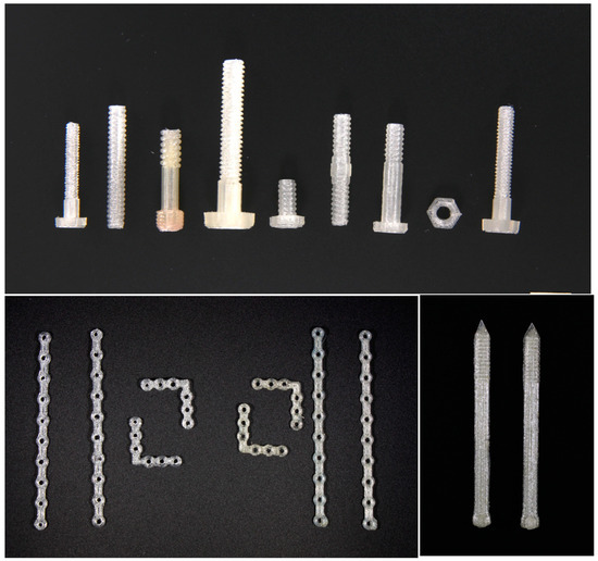 The non-3D printed fracture fixation devices fabricated from different lactic acid-based polymers, such as poly L-lactic acid (PLLA), poly lactic glycolic acid (PLGA), and poly caprolactone (PCL), have compression strength values of 80–500 MPa, 40–55 MPa, and 20–40 MPa, respectively [14]. While the 3D printed PLA constructs had compression strength of 67.66 MPa, indicating their feasibility in orthopedic applications. The present study showed feasibility of 3D printing screws, plating, and other constructs impregnated with drugs, and profiled the mechanical properties effect of incorporating these drugs into the 3D printed constructs. The drug impregnating capabilities are similar to prior in vitro studies that incorporated antibiotics and chemotherapeutics into 3D printed constructs [8,9,11,15,16,17]. Several studies have shown antibiotics and chemotherapeutics incorporated into 3D printed filaments, catheters, and meshes [9,11,15]. Additional drug-incorporating studies into 3D printed constructs have shown the capability to have implants impregnated with contrast materials [16,17], hormones [8], and act as a scaffold for tissue cultures [18].