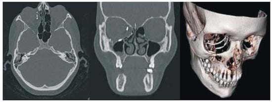 - Wolff, J.; Sándor, G.K.; Pyysalo, M.; Miettinen, A.; Koivumäki, A.-V.; Kainulainen, V.T. Late Reconstruction of Orbital and Naso-orbital Deformities. Oral Maxillofac. Surg. Clin. N. Am. 2013, 25, 683–695. [Google Scholar] [CrossRef] [PubMed]