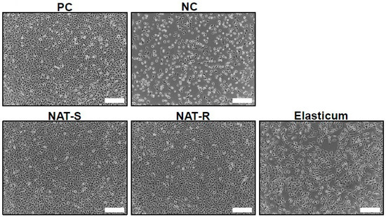 - The degree of cell viability was significantly higher in both NAT-R and -S as compared with Elasticum® (p < 0.05).