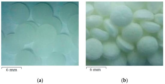 The appearance of finely cut circular polycaprolactone (PCL) scaffolds of (a) the 2-dimensional (2D) flat sheet and (b) the 3-dimensional (3D) sponge disc.