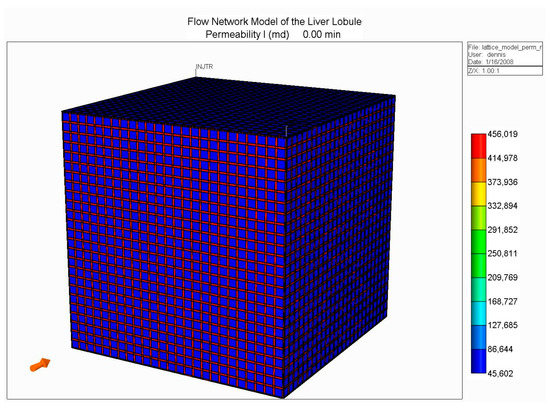 Other researchers have investigated 2D and 3D flow models to address the consequences of liver lobule flow patterns and zonation. Debbaut et al. [180] utilized CFD methods to calculate flows through an imaged 3D sinusoidal network with a size of 50 µm3 to study the effects of an anisotropic sinusoid network pattern. Ding et al. [181] utilized a representation of the liver acinus with an explicit sinusoid pattern to analyze the blocking effects of cancer cells on a liver-zoned O2 distribution. Hoehme et al. [182] emphasized the role of sinusoid microvessels in determining lobule architecture for liver regeneration.