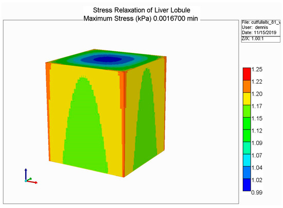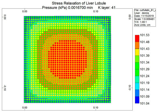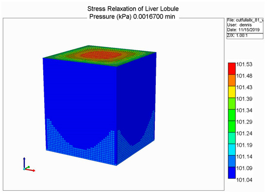 For fluid-filled (porous) media, Biot’s theory requires two additional constants describing fluid-solid coupling: Biot’s constant α and Skempton’s coefficient Sk (see Rice and Cleary [220]). These can also be expressed in terms of other coefficients (e.g., drained Poisson’s ratio). For the liver, we chose α = 1.0 and Sk = 1.0. Finally, the relaxation of fluid stress with fluid flow is governed by a “pressure diffusion coefficient”, which is essentially a rescaled Darcy permeability. We will make further comments on the role of this coefficient in subsequent sections.