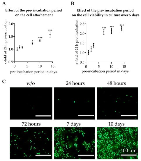 2.7.1. Increasing Cell Attachment by Pre-Incubation of Scaffolds