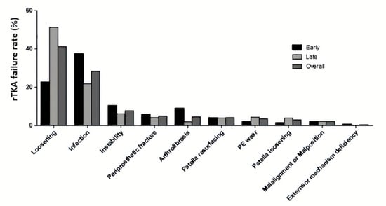 - Mortazavi, S.M.J.; Molligan, J.; Austin, M.S.; Purtill, J.J.; Hozack, W.J.; Parvizi, J. Failure following revision total knee arthroplasty: Infection is the major cause. Int. Orthop. 2011, 35, 1157–1164. [Google Scholar] [CrossRef]