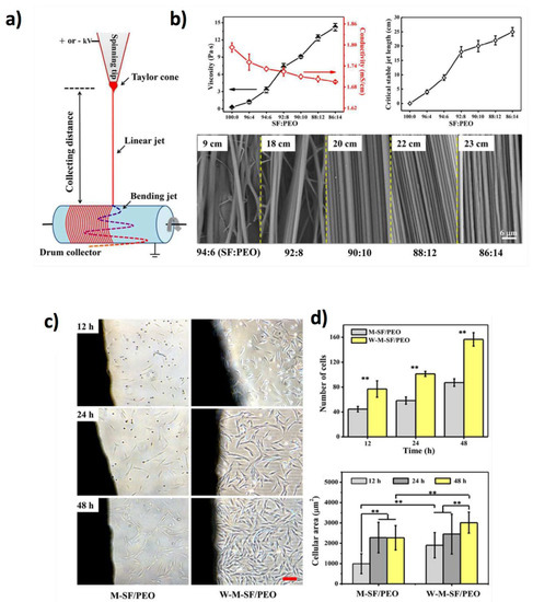 - Yi, B.; Zhang, H.; Yu, Z.; Yuan, H.; Wang, X.; Zhang, Y. Fabrication of high performance silk fibroin fibers via stable jet electrospinning for potential use in anisotropic tissue regeneration. J. Mater. Chem. B 2018, 6, 3934–3945. [Google Scholar] [CrossRef] [PubMed]