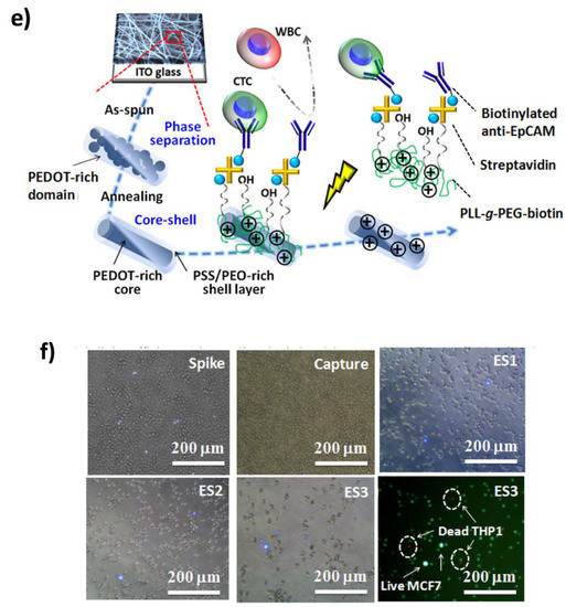 - Yu, C.-C.; Ho, B.-C.; Juang, R.-S.; Hsiao, Y.-S.; Venkata Ram Naidu, R.; Kuo, C.-W.; You, Y.-W.; Shyue, J.-J.; Fang, J.-T.; Chen, P. Poly(3,4-ethylenedioxythiophene)-Based Nanofiber Mats as an Organic Bioelectronic Platform for Programming Multiple Capture/Release Cycles of Circulating Tumor Cells. ACS Appl. Mater. Interfaces 2017, 9, 30329–30342. [Google Scholar] [CrossRef] [PubMed]