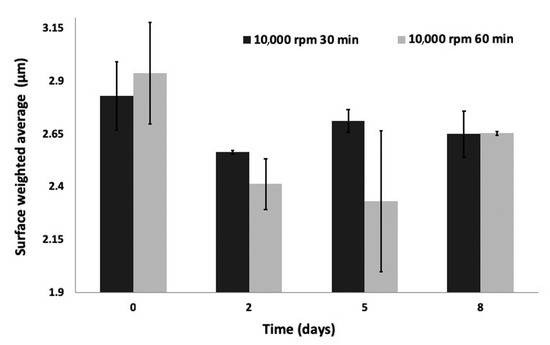 | Speed (rpm) | Duration (min) | SWA | Median Diameter (d50) | ||