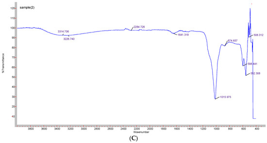 ATR-FTIR spectra to determine the functional groups present in the NPs. (A) CA-in-DMEM; (B) CA-in-DMB; (C) HA.