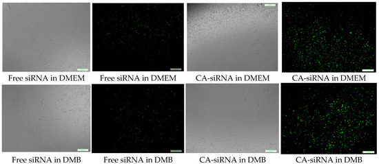 The following are available online at https://www.mdpi.com/2079-4983/11/3/63/s1, Figure S1: Cellular uptake of NP bound Alexa Fluor 488 neg siRNA. All NPs were prepared in 100 μL with 10 nM of siRNA and topped up to 1 mL with C-DMEM. After 4 h, cells were washed with 5 mM EDTA and PBS before viewing under microscope. Row 1: CA-in-DMEM, Row 2: CA-in-DMB, Row 3: HA, Figure S2: Cellular uptake of HA-siRNA. HA particles were prepared in 100 μL with 10 nM of siRNA and topped up to 1 ml with C-DMEM or serum free DMEM. After 4 h, cells were washed with 5 mM EDTA and PBS to remove extracellular HA. Images were taken before and after wash. Row 1: HA-siRNA with serum, Row 2: HA-siRNA without serum.