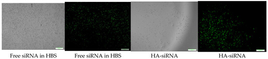 3.10. Cellular Uptake of Fluorescence siRNA-Loaded CA and HA—Microscopic Analysis