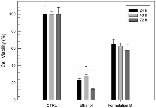 3.3. MTT Test for In Vitro Cytotoxic Evaluation
