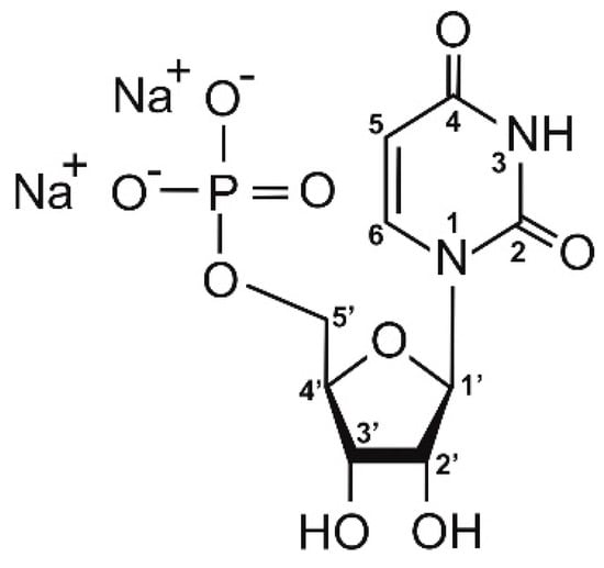 Uridine 5′-monophosphate disodium salt is an organic chemical compound, a nucleotide that is a major component of ribonucleic acid. This neuroactive molecule plays an important function in the pyrimidine metabolism of the brain, furnishes nervous tissue with the pyrimidine ring and takes part in the metabolic pathways. In addition, UMP acts as a signaling molecule in the central nervous system and participates in the control of physiological and pathophysiological brain functions. This nucleotide can be used in the treatment of neurodegenerative diseases and polyneuropathy and in the therapy of the myelin sheath lesion [35,36].