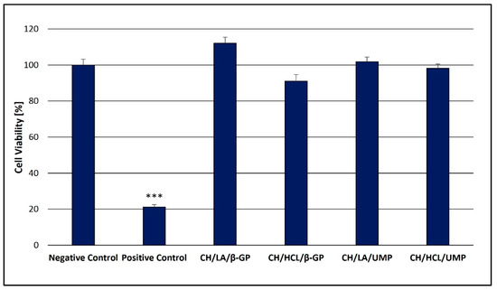 Cytotoxicity of the chitosan hydrogels. *** p < 0.001 versus negative control.