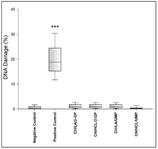 Genotoxicity of the chitosan hydrogels. *** p < 0.001 versus negative control.