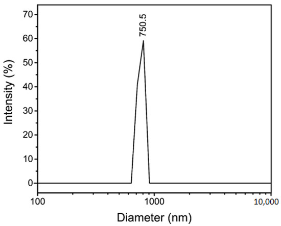 The DLS analysis (Figure 5) showed that CuO/CeO2 NCs were highly agglomerated. Compared to the solid-state size, the hydrodynamic size (750.5 nm) was more than 15- and 24-times greater than the mean sizes obtained from FESEM and TEM images, respectively. The measurement of the hydrodynamic particle sizes presented the sizes of the largest particles in the solution. The weak interactions of the solvent such as hydrogen bonds with the surface of the CuO/CeO2 NCs led to the formation of layers of waters, aggregation of smaller particles or maybe other ionic components around the NCs. Therefore, the increased hydrodynamic size is reasonable. The Zeta potential was also assessed to be −20.0 mV, which was due to the presence of the hydroxyl or maybe the carboxyl groups on the surface of the CuO/CeO2 NCs. Previous reports also suggest that zeta potentials lower than 25 mV would yield a high degree of colloidal stability [50]. Interestingly, the hydrodynamic sizes were much higher than what is expected due to zeta potential. The only rational reason could be the limitations of the DLS analyzer, which can only be sensitive to larger particles. As the TEM result showed, the particles with sizes of nearly 180 nm were observed in the solid phases. Therefore, due to the limitations of the DLS device and the presence of larger particles, it can be concluded that the obtained particle size was plausible.