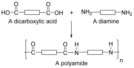 Polyamide is a polymer with repeating units linked by amide bonds, while a group of small polyamides containing multiple amino acids of the same types linked through amide bonds is often referred to as poly(amino acid)s. Polyamide occurs naturally or can be made synthetically (Figure 1) []. Naturally occurring polyamides include proteins, such as silk and wool, while synthetically made polyamides include materials such as nylons, sodium poly(aspartate) and aramids []. Polyamides can also be categorized into: homopolyamides with one kind of monomer, and copolyamides with different constituents []. Polyamide was first introduced as the toothbrush filaments of polyamide 6,6 by DuPont in 1938. By 1950, it found applications in the plastic industry due to its attractive properties such as thermal stability, good chemical resistance, relatively high tensile strength and stiffness []. Polyamides possess excellent mechanical characteristics, good sliding and wearing characteristics. Polyamides are distinguishable based on mechanical properties PA 66 (hard and tough) and PA 12 (soft with flexible properties). Marketed types of polyamides include polyamide 4,6; polyamide 6; polyamide 6,6; polyamide 6,12; polyamide 11; and polyamide 12 amongst which most of them are used as thermoplastics. In the 2000s, polyamide polymers were used to incorporate water-insoluble and metabolically unstable anti-neoplastic drugs. The advantages of using polyamide polymers as the drug delivery system include localized target site action, sustained release and stabilization. However, microbial contamination, excessive hydration and reduced viscosity on storage are disadvantages []. Aliphatic polyamides complexed with nanoparticles have been explored for multifunctional applications [].
