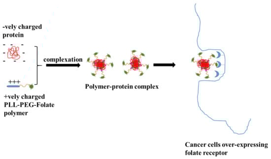 - Kim, S.H.; Jeong, J.H.; Joe, C.O.; Park, T.G. Folate receptor mediated intracellular protein delivery using PLL–PEG–FOL conjugate. J. Control. Release 2005, 103, 625–634. [Google Scholar] [CrossRef] [PubMed]