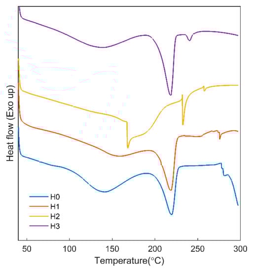 DSC thermograms of the samples at a heating rate of 10 °C/min under N2 atmosphere.