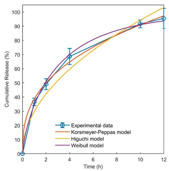 - Papadopoulou, V.; Kosmidis, K.; Vlachou, M.; Macheras, P. On the use of the Weibull function for the discernment of drug release mechanisms. Int. J. Pharm. 2006, 309, 44–50. [Google Scholar] [CrossRef]