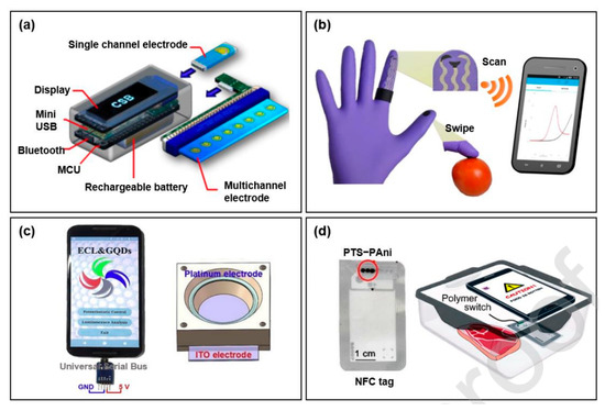- Ji, D.; Liu, L.; Li, S.; Chen, C.; Lu, Y.; Wu, J.; Liu, Q. Bioelectronics: Smartphone-based cyclic voltammetry system with graphene modified screen printed electrodes for glucose detection. Biosens. Bioelectron. 2017, 98, 449–456. [Google Scholar] [CrossRef] [PubMed]