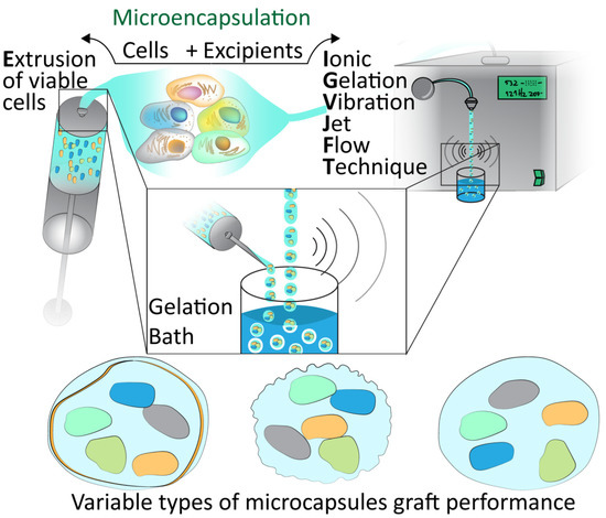 Key to cell microencapsulation is the use of idealistic excipients and polymers in the development of the microcapsules. A wide range of polymers have been suggested for incorporation, with particular focus on the use of sodium alginate. For more information about polymers, both natural and synthetic, used in cell microencapsulation, the reader is invited to consult the following published materials [110,113,114,115].