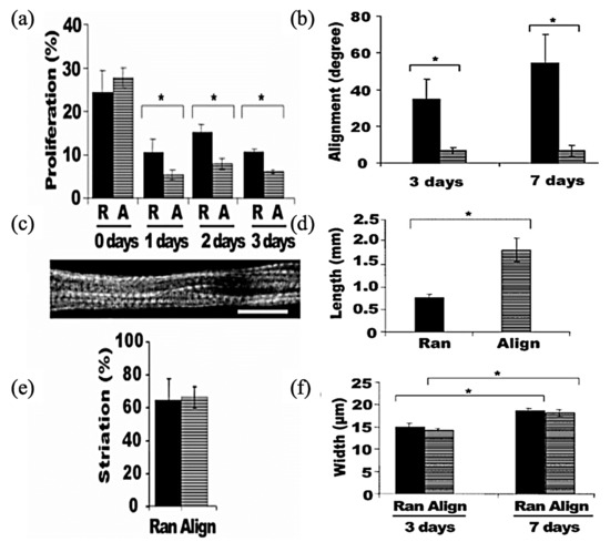 - Huang, N.F.; Patel, S.; Thakar, R.G.; Wu, J.; Hsiao, B.S.; Chu, B.; Lee, R.J.; Li, S. Myotube Assembly on Nanofibrous and Micropatterned Polymers. Nano Lett. 2006, 6, 537–542. [Google Scholar] [CrossRef]