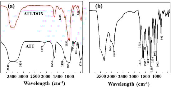 FTIR spectra of ATT and ATT/DOX complexes (a), and free DOX (b).