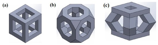 3D printing CAD models for topologically ordered porous iron structures, (a) cubic, (b) truncated octahedron, (c) pyramid individuals (Reprinted with permission from Ref. [42]. Copyright @ 2019, Elsevier).