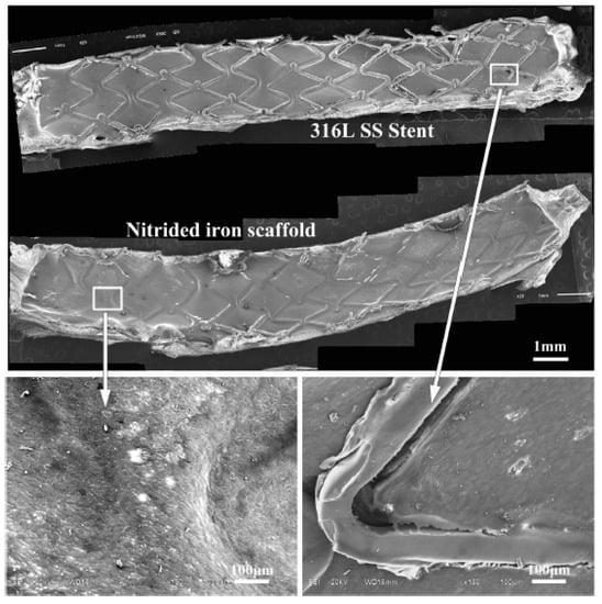 - Lin, W.; Qin, L.; Qi, H.; Zhang, D.; Zhang, G.; Gao, R.; Qiu, H.; Xia, Y.; Cao, P.; Wang, X.; et al. Long-term in vivo corrosion behavior, biocompatibility and bioresorption mechanism of a bioresorbable nitrided iron scaffold. Acta Biomater. 2017, 54, 454–468. [Google Scholar] [CrossRef]