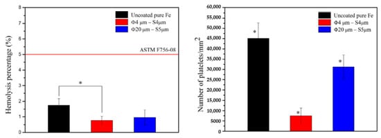 Despite the improvement in the mechanical properties and degradation rate, it has demonstrated that no significant toxicity on the L-929 cells and human umbilical vein endothelial cells EA were observed. Considering the concerns related with the bio application, the hemolysis results of all the developed iron-based biomaterials were within the range of 5% (Figure 7b), which is the criteria range value for been considered a biomaterial with good hemocompatibility. Additionally, the amount of platelet adhered on the surface of as-sintered iron-based materials was lower than that of as-cast pure iron, and the morphology of platelets was kept smoothly spherical on the surface of all the developed iron materials.