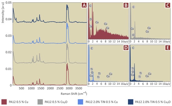 | 1105 | C-O-C stretching [85] | Increase in the PA12 with Cu2O sample |