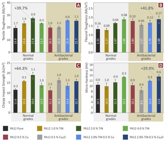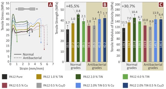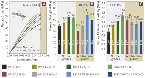Chicago/Turabian StyleVidakis, Nectarios, Markos Petousis, Nikolaos Mountakis, Apostolos Korlos, Vassilis Papadakis, and Amalia Moutsopoulou. 2022. "Trilateral Multi-Functional Polyamide 12 Nanocomposites with Binary Inclusions for Medical Grade Material Extrusion 3D Printing: The Effect of Titanium Nitride in Mechanical Reinforcement and Copper/Cuprous Oxide as Antibacterial Agents" Journal of Functional Biomaterials 13, no. 3: 115. https://doi.org/10.3390/jfb13030115