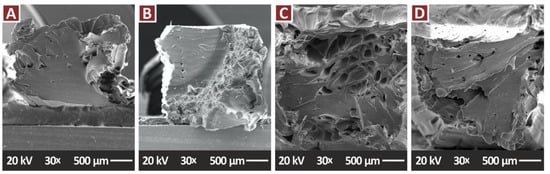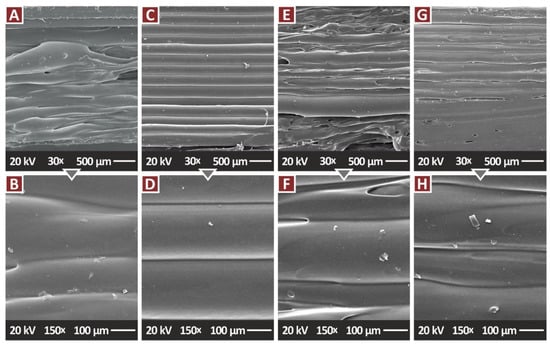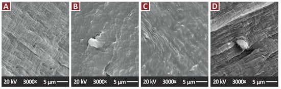 3.4. Morphological Characterization of the 3D-printed Specimens with Scanning Electron Microscopy (SEM)