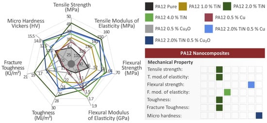 - Vidakis, N.; Petousis, M.; Mountakis, N.; Maravelakis, E.; Zaoutsos, S.; Kechagias, J.D. Mechanical response assessment of antibacterial PA12/TiO2 3D printed parts: Parameters optimization through artificial neural networks modeling. Int. J. Adv. Manuf. Technol. 2022, 121, 785–803. [Google Scholar] [CrossRef] [PubMed]