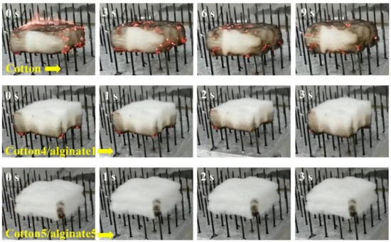 - Wang, B.; Li, P.; Xu, Y.-J.; Jiang, Z.-M.; Dong, C.-H.; Liu, Y.; Zhu, P. Bio-based, nontoxic and flame-retardant cotton/alginate blended fibres as filling materials: Thermal degradation properties, flammability and flame-retardant mechanism. Compos. Part B Eng. 2020, 194, 108038. [Google Scholar] [CrossRef]