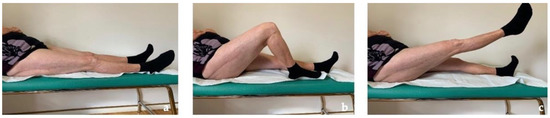 Clinical follow-up at 30 months with almost complete ROM of the right hip. (a) Neutral position. (b) Active knee flexion (c) Active hip flexion.