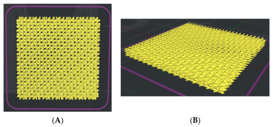 The preview architectures of the scaffold prior to the printing process; (A) top view and (B) perspective view.