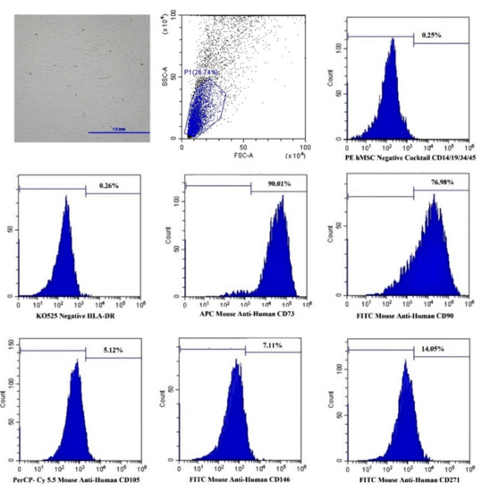 The images of flow cytometry analysis demonstrated the expression profiles of the MSC markers, hematopoietic markers, CD271 and CD146 in the XSF group.