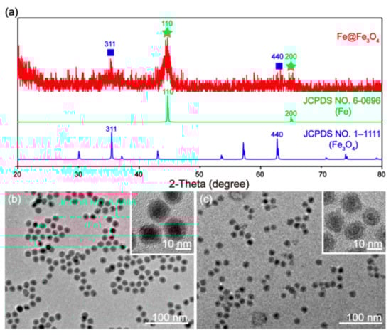 - Lacroix, L.-M.; Frey Huls, N.; Ho, D.; Sun, X.; Cheng, K.; Sun, S. Stable single-crystalline body centered cubic Fe nanoparticles. Nano Lett. 2011, 11, 1641–1645. [Google Scholar] [CrossRef]