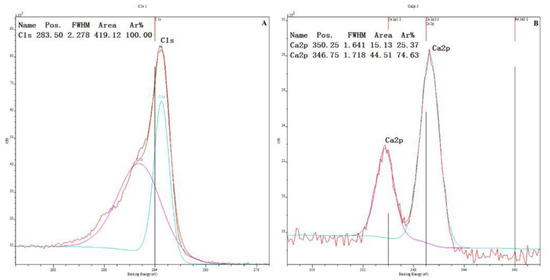 X-ray photoelectron spectroscopy results for the PEKK/HA composite. (A): Carbon from PEKK; (B): calcium from HA [34].