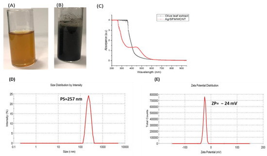 APA StyleAlhajri, H. M., Aloqaili, S. S., Alterary, S. S., Alqathama, A., Abdalla, A. N., Alzhrani, R. M., Alotaibi, B. S., & Alsaab, H. O. (2022). Olive Leaf Extracts for a Green Synthesis of Silver-Functionalized Multi-Walled Carbon Nanotubes. Journal of Functional Biomaterials, 13(4), 224. https://doi.org/10.3390/jfb13040224