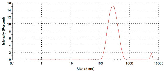 The size and size distribution of this formulation was determined and characterized using DLS. Figure 2 shows a size distribution diagram of MSN-FP within the water. The DLS result showed that the hydrodynamic diameter of the MSN-FP was 400 nm with PDI of 0.382 and charge was −10 mV.
