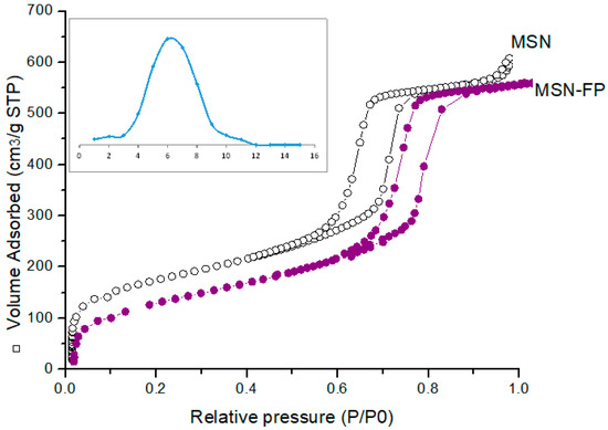 Nitrogen adsorption/desorption isotherms of MSN and MSN-FP.