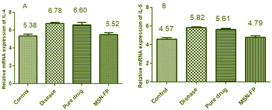Effect of MSN-FP-Nasal-spray on IL-4 (A) and IL-5 (B) mRNA Expression Level.