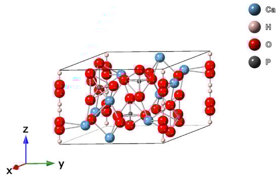 The molecular structure of hydroxyapatite—unit cell perspective of hexagonal crystal structure with P63/m symmetry [36,37].