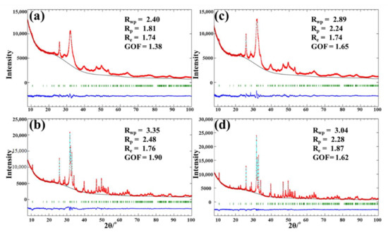- Toby, B.H. R factors in Rietveld analysis: How good is good enough? Powder Diffr. 2006, 21, 67–70. [Google Scholar] [CrossRef]