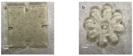 The appearances of the UV-cured (a) jigsaw and (b) flower samples.