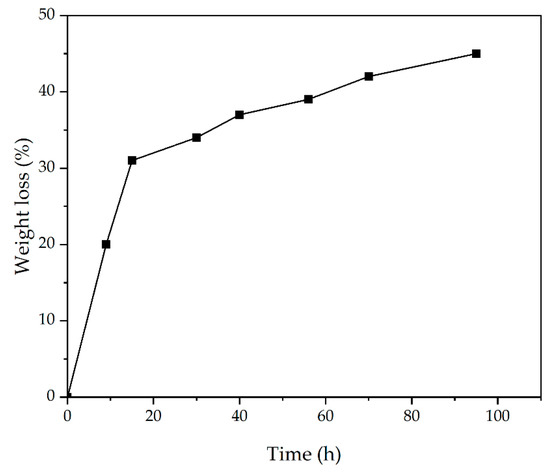 Weight loss of CS-CQD-TiO2-GO electrospun nanofiber. At first, biodegradability has increased, and it seems that this slope is almost fixed over time.