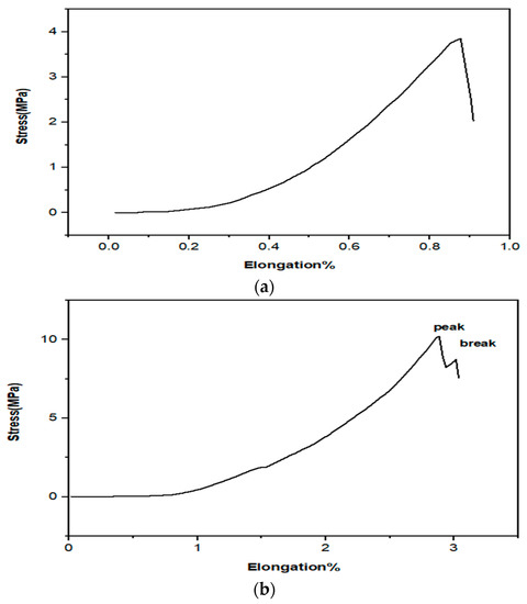 (a) Stress-elongation diagram in terms of pure bacterial cellulose. (b) Stress-elongation diagram in terms of bacterial cellulose/CS-CQDs-TiO2-GO electrospun nanofiber.